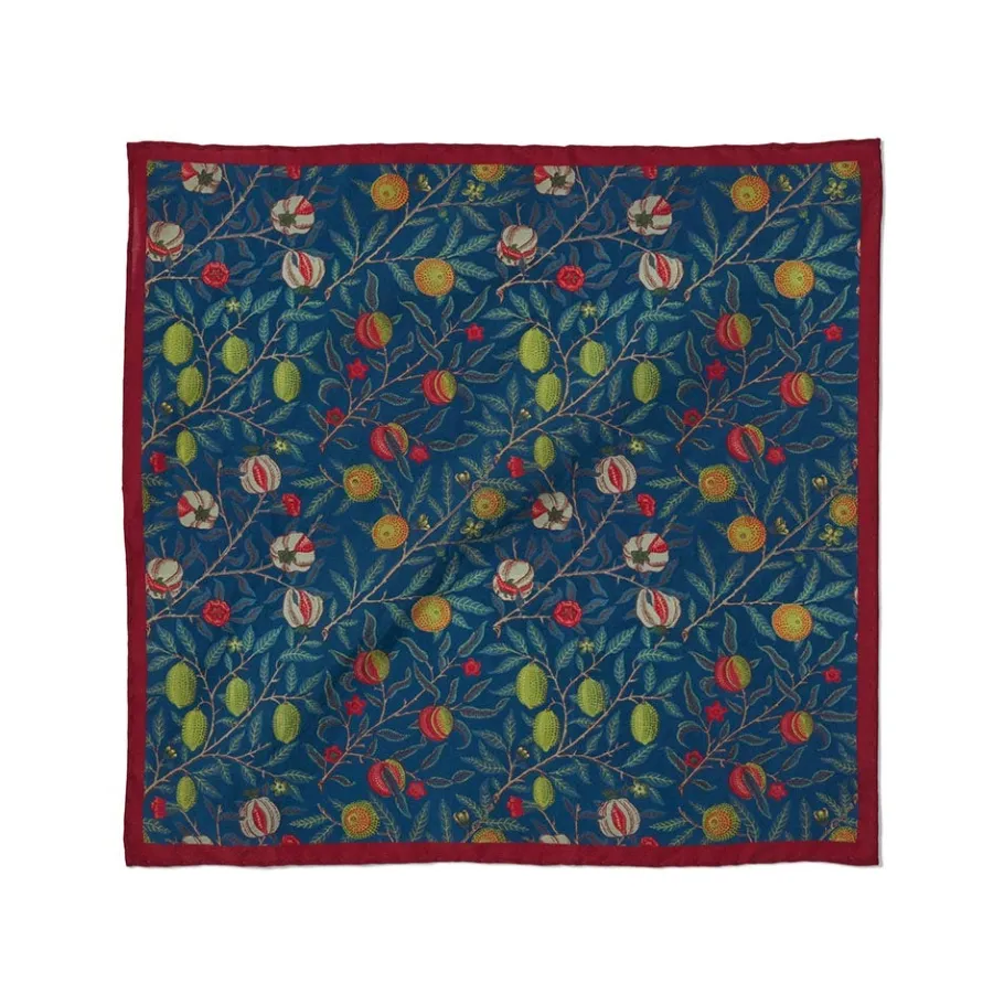 This stylish pocket square features a detail from Fruit (or Pomegranate) (ca. 1866), a block-printed wallpaper in The Met collection. This sumptuous pattern was created by William Morris (British, 1834–1896), the leading figure of the Arts and Crafts movement in England. Morris believed that beauty, imagination, and order were the necessary components of a strong design.